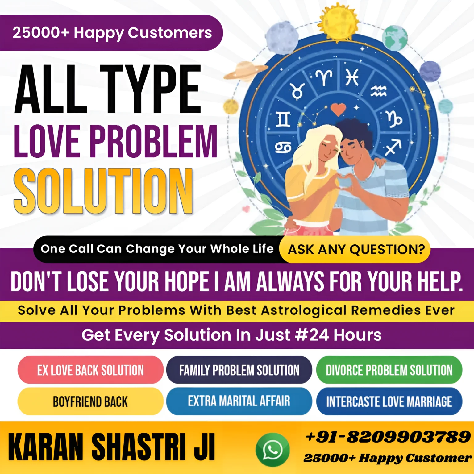 The best solution for husband-wife problems is astrology, which is also helpful to use and will stop the couple from fighting. Pandit Karan Shastri Ji is able to assist you in achieving their happiness and reunion in the near future.